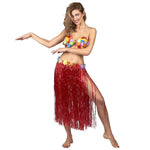Adult size womens cute and fun Hawaiian luau Hula skirt. This is a long length measuring approx 60cm and is a bright red coloured plastic material that looks like straw....