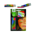 One size fits all Rainbow coloured wig. Great for events, parties and will certainly get you noticed. Synthetic fibre material.